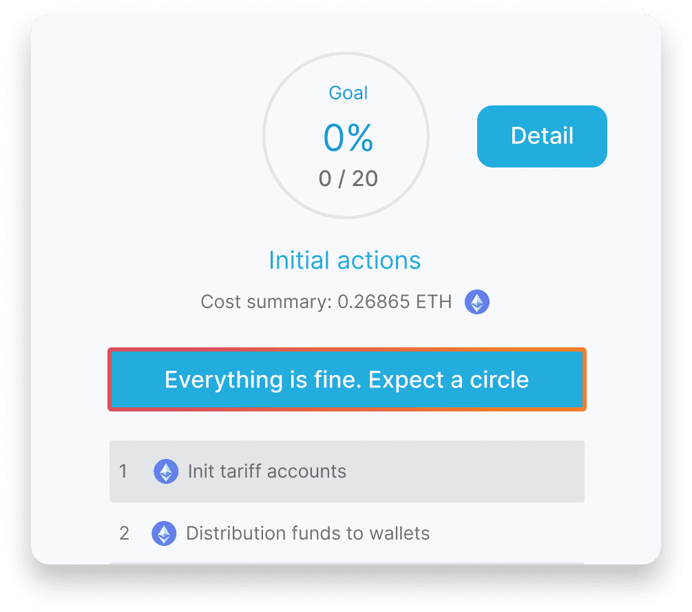 9. Add liquidity, click on «Circle 2» => «Init» => «Approve» => «Distribute»